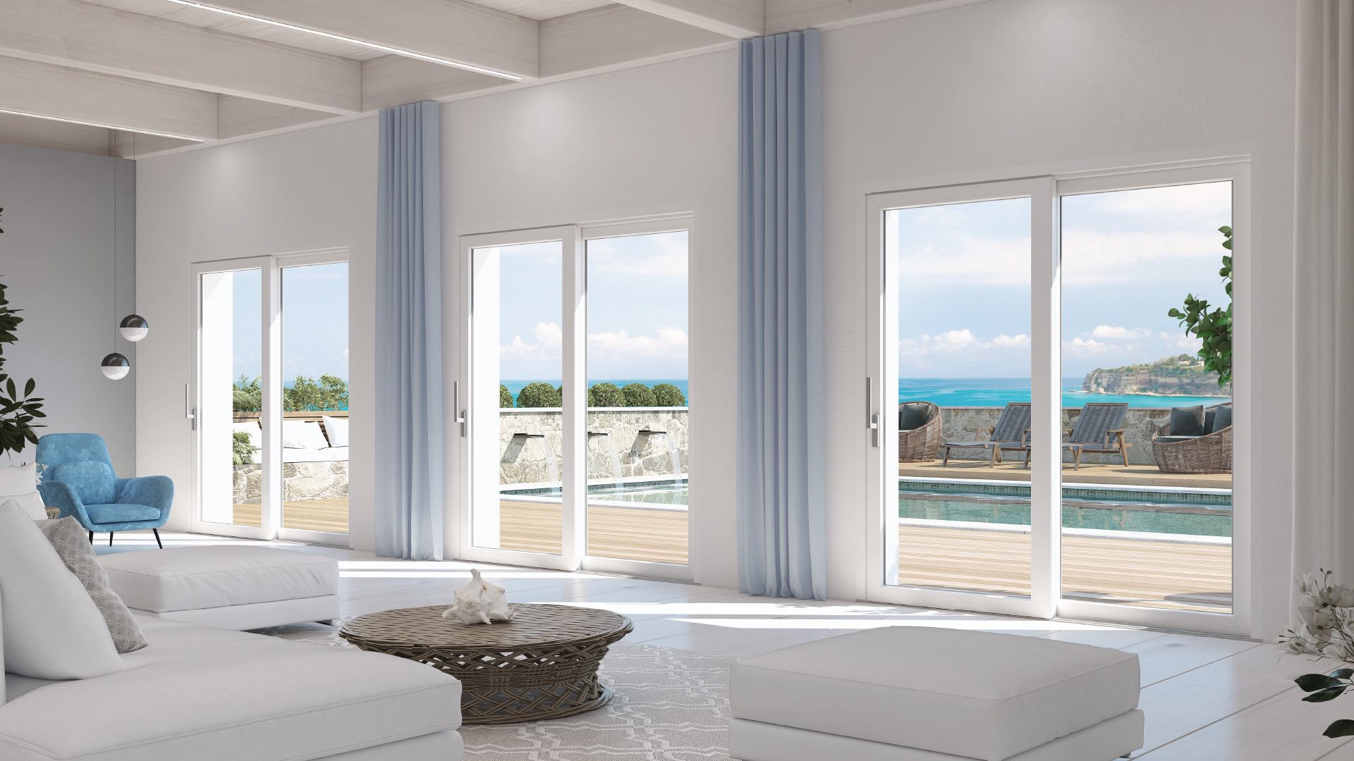 Meridiana è la linea in PVC di alzanti scorrevoli che, con profilo moderno ed essenziale, valorizza la luce, riduce l'impatto visivo e offre grande comfort in ogni ambiente. La versione ZERO elimina l'anta laterale fissa per una massima apertura visiva e continuità tra interno ed esterno.